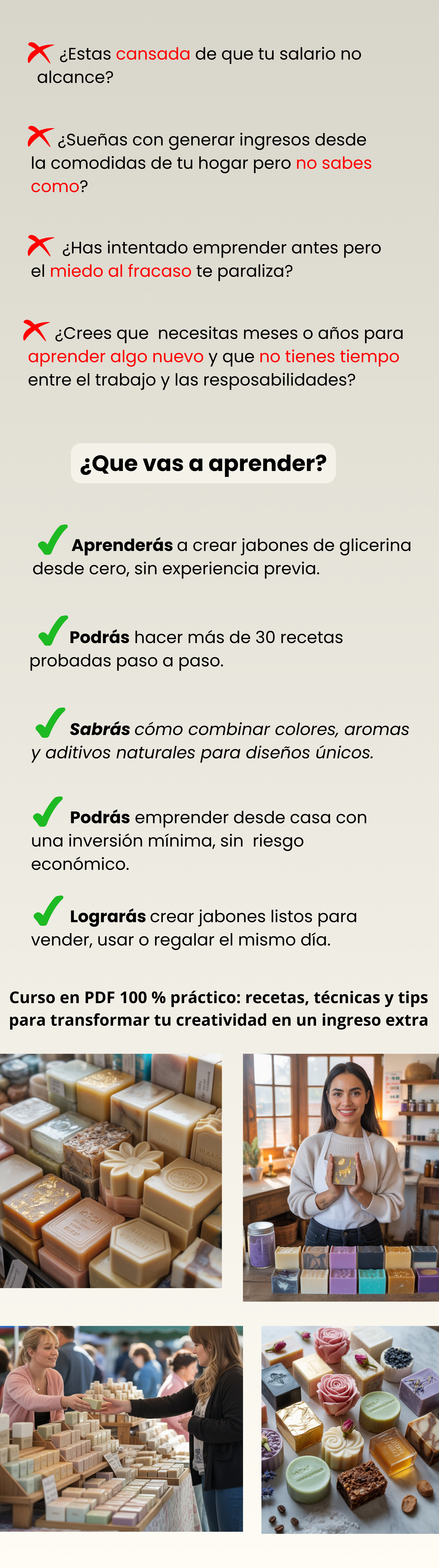 CURSO JABONERIA ARTESANAL + 5 BONUS DE REGALO🎁. CREA Y VENDE DESDE TU CASA